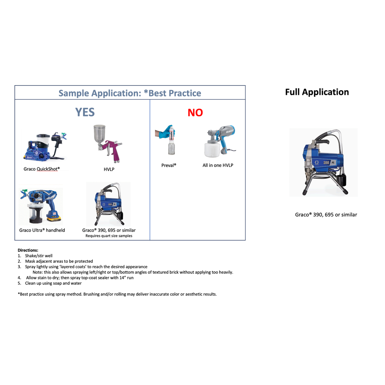 IMPORTANT: Final appearance varies based on background colors, textural variations, lighting conditions and application techniques. We strongly recommend using the Stayntech® sample kit to ensure expected results.